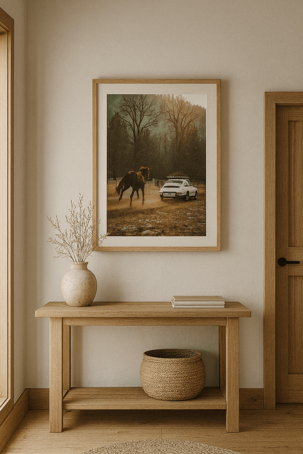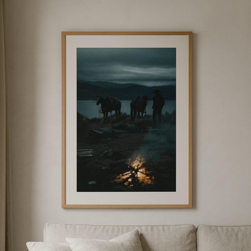 A cinematic nod to the long way home. Movement, dust, and the pull of instinct make this bestselling print a powerful centerpiece for any room built on story.